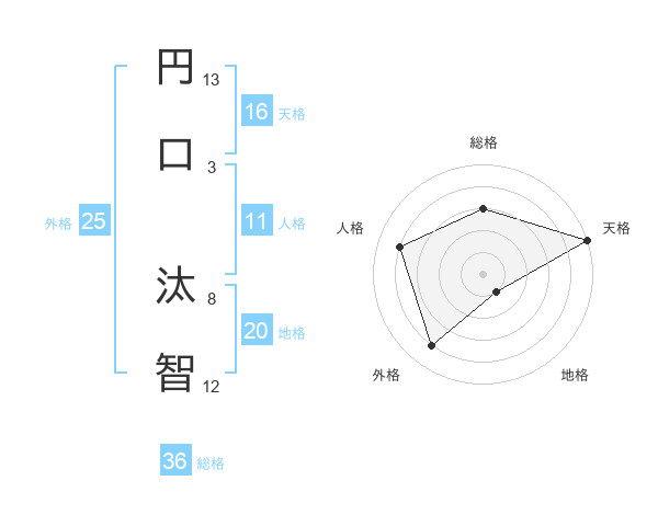 円口 汰智さんの地格は20画の1点!