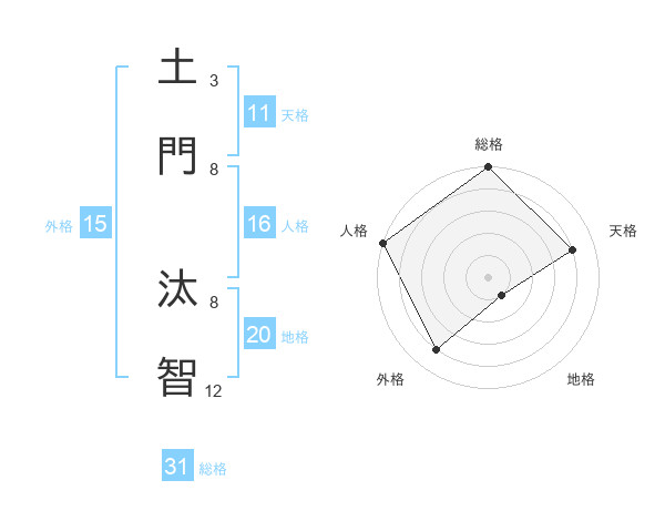 土門 汰智さんの総格は31画の5点!