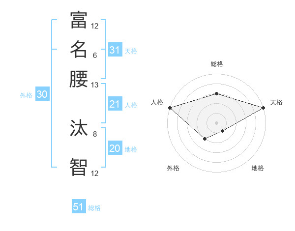 富名腰 汰智さんの総格は51画の3点!