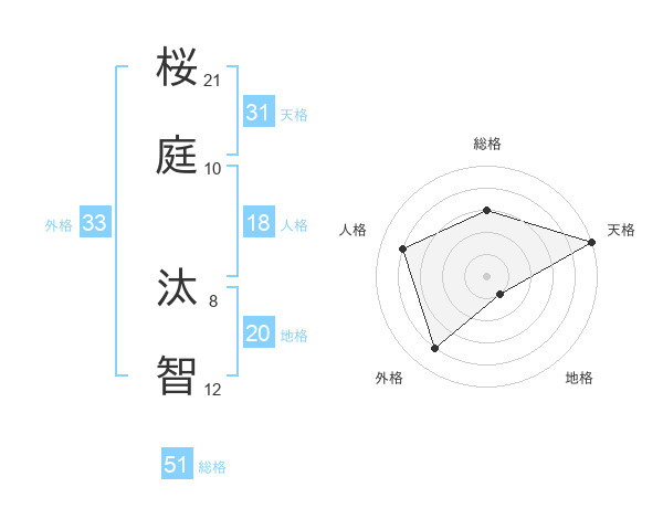 桜庭 汰智さんの天格は31画の5点!