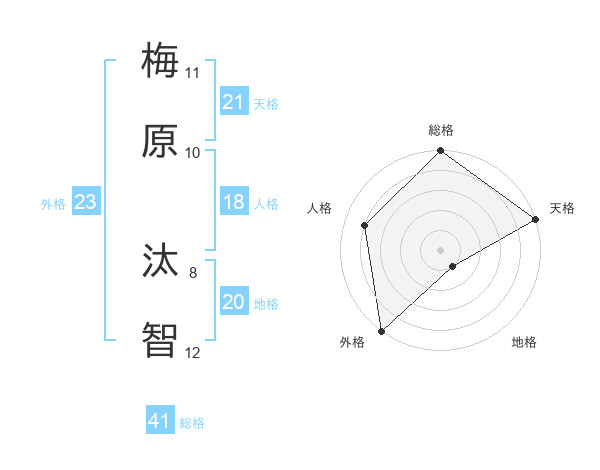 梅原 汰智さんを姓名の画数から五運を鑑定