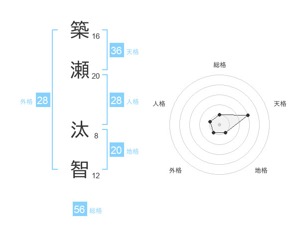 築瀬 汰智さんの総格は56画の1点!