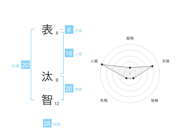表 汰智さんの総格は28画の1点!