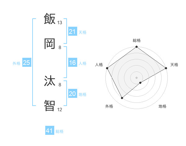 飯岡 汰智さんの天格は21画の5点!