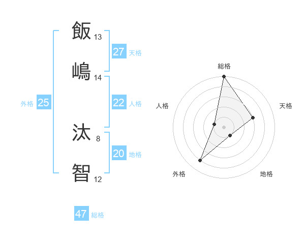 飯嶋 汰智さんの総格は47画の5点!