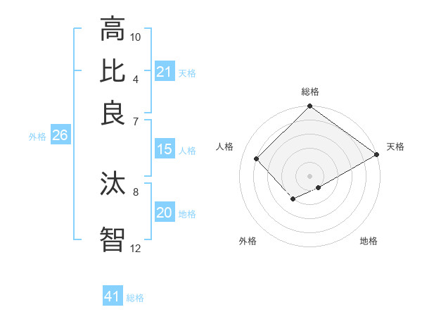 高比良 汰智さんの天格は21画の5点!