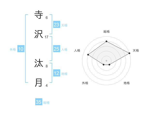 寺沢 汰月さんの総格は35画の4点!