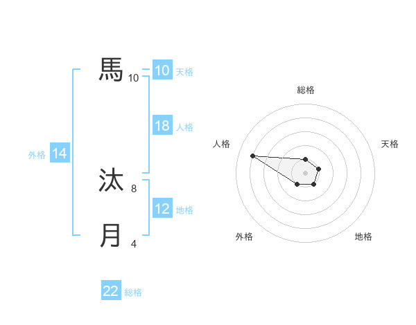 馬 汰月さんの総格は22画の1点!