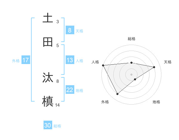 土田 汰槙さんを姓名の画数から五運を鑑定