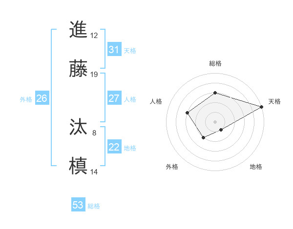 進藤 汰槙さんを姓名の画数から五運を鑑定