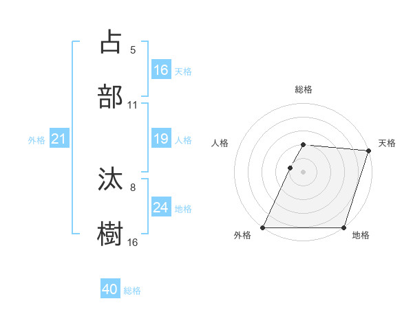 占部 汰樹さんの総格は40画の2点!