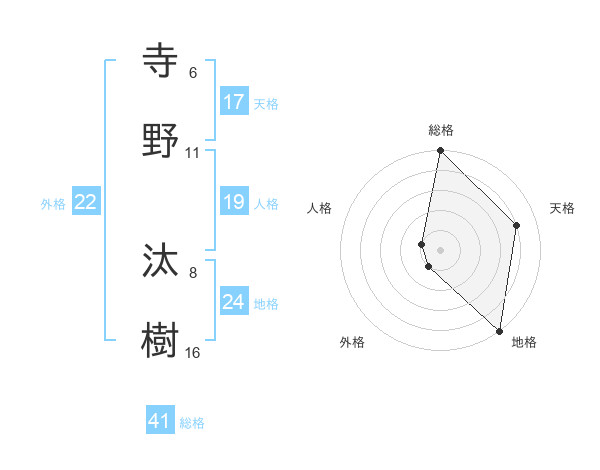 寺野 汰樹さんの天格は17画の4点!
