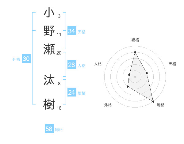 小野瀬 汰樹さんを姓名の画数から五運を鑑定
