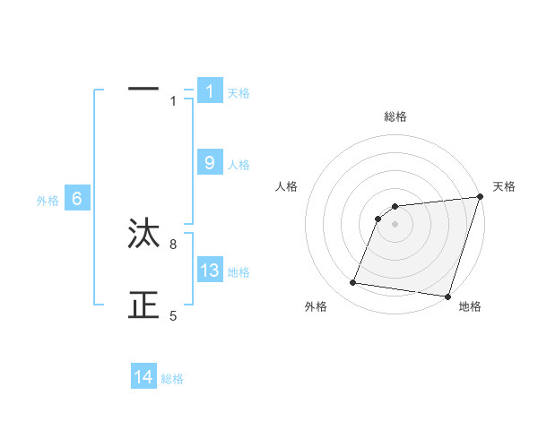 一 汰正さんの総格は14画の1点!