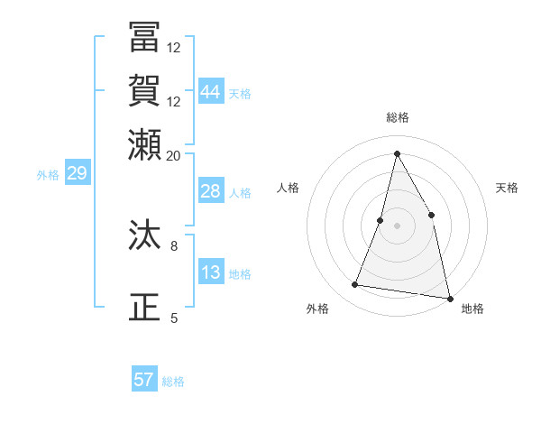 冨賀瀬 汰正さんを姓名の画数から五運を鑑定