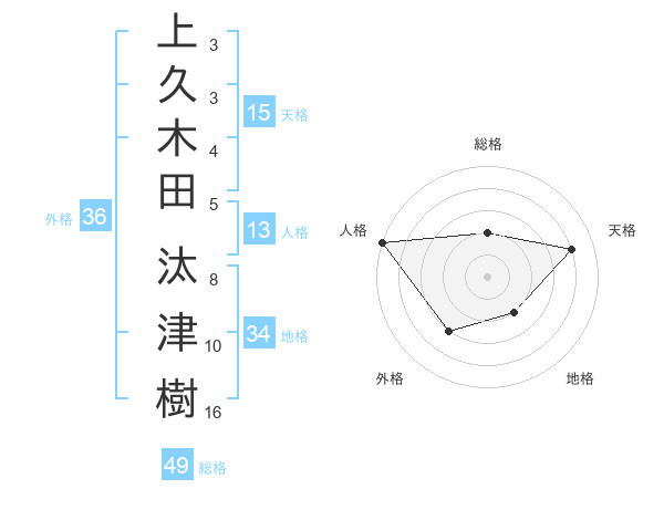 上久木田 汰津樹さんの外格は36画の3点