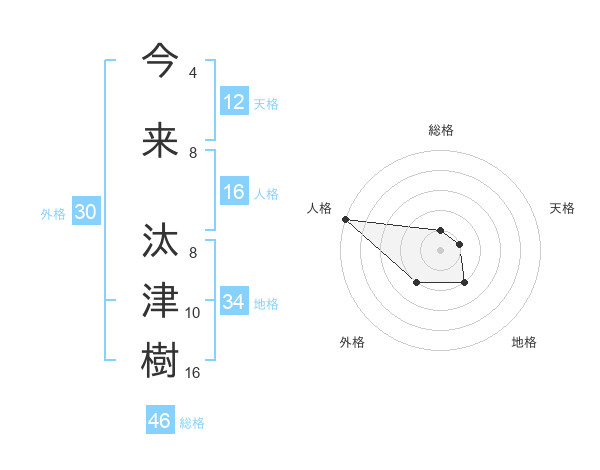今来 汰津樹さんを姓名の画数から五運を鑑定