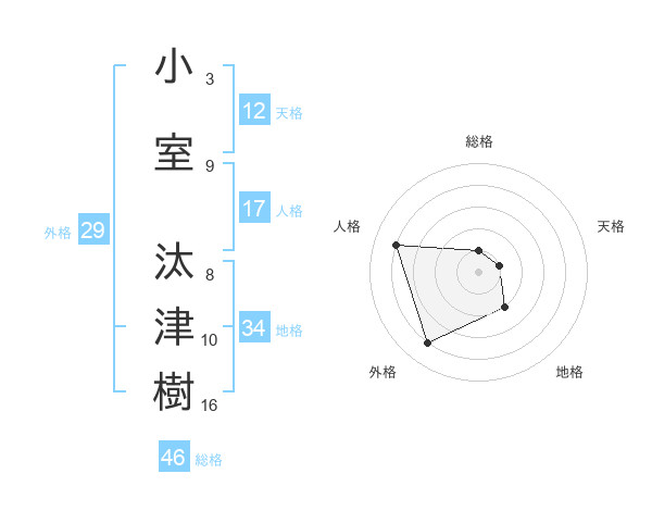 小室 汰津樹さんを姓名の画数から五運を鑑定