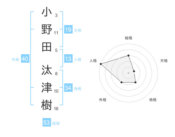 小野田 汰津樹さんを姓名の画数から五運を鑑定