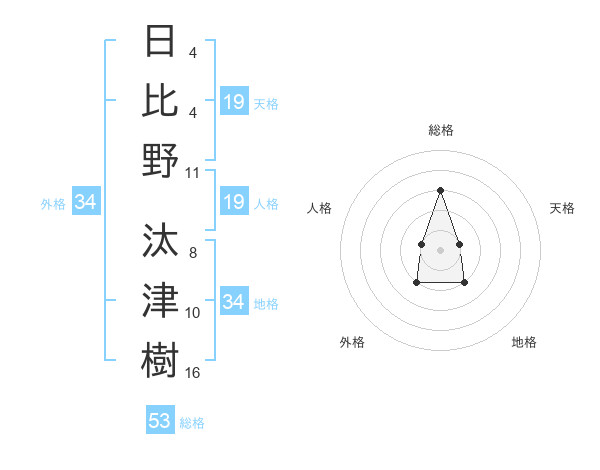 日比野 汰津樹さんを姓名の画数から五運を鑑定