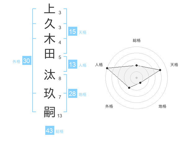 上久木田 汰玖嗣さんの天格は15画の4点!