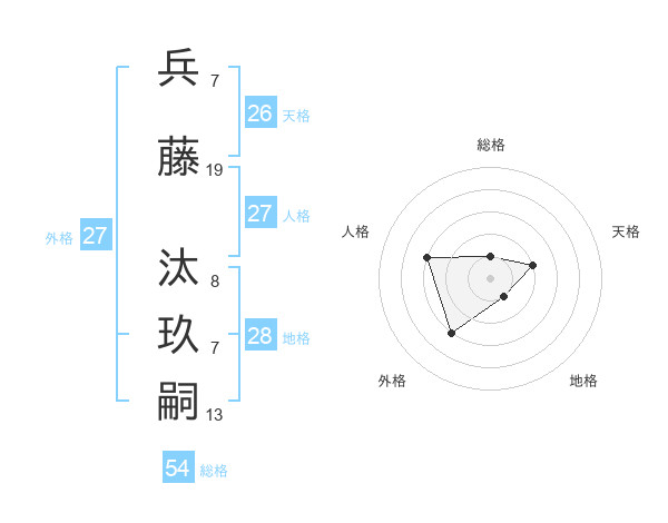 兵藤 汰玖嗣さんの総格は54画の1点!