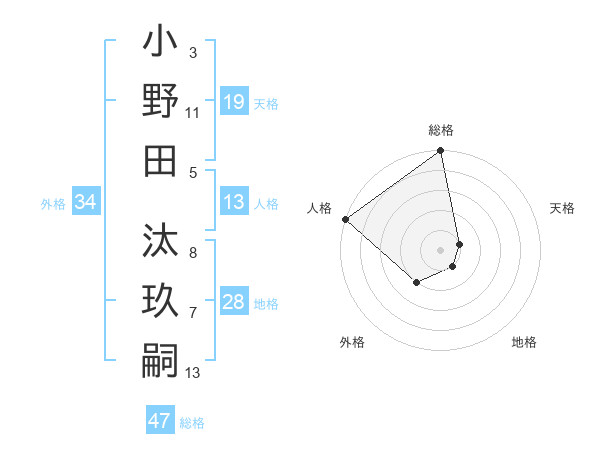 小野田 汰玖嗣さんを姓名の画数から五運を鑑定