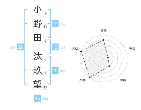 小野田 汰玖望さんの外格は32画の5点!