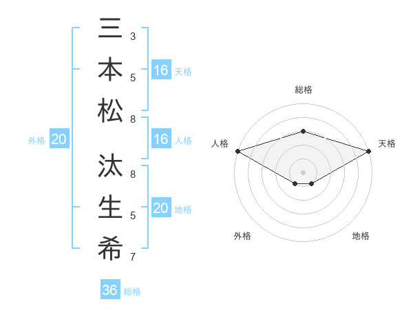 三本松 汰生希さんを姓名の画数から五運を鑑定