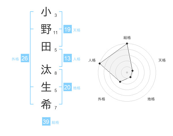 小野田 汰生希さんを姓名の画数から五運を鑑定