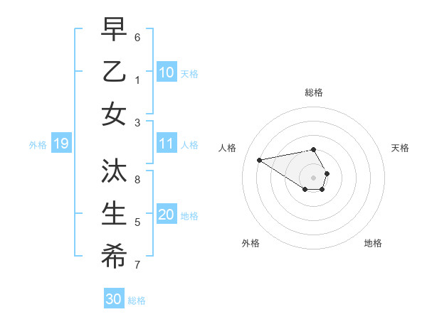早乙女 汰生希さんの総格は30画の2点!