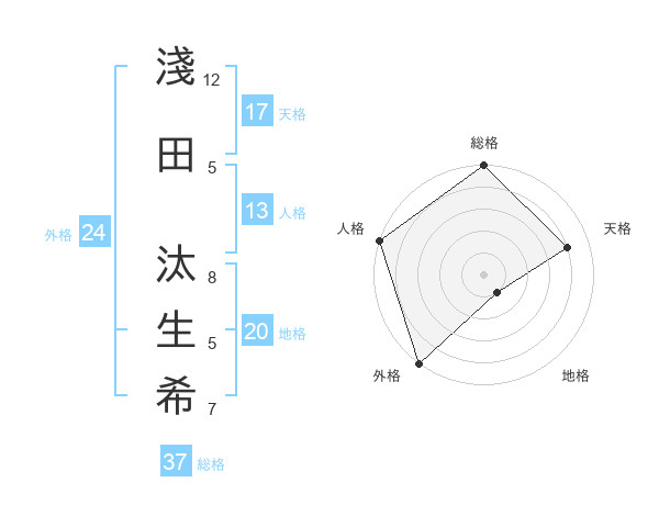 淺田 汰生希さんを姓名の画数から五運を鑑定
