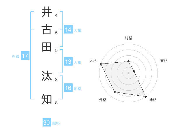 井古田 汰知さんを姓名の画数から五運を鑑定