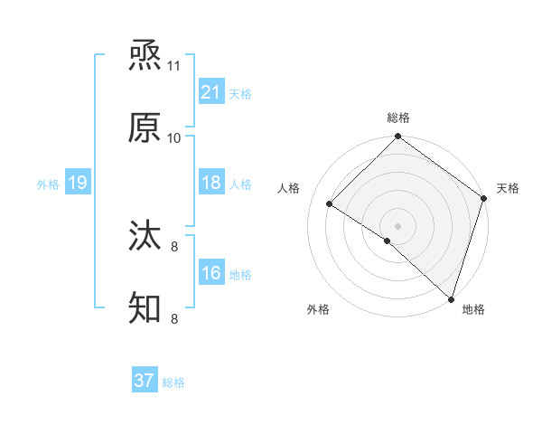 焏原 汰知さんの天格は21画の5点!