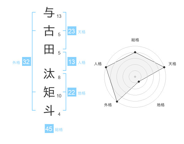 与古田 汰矩斗さんの天格は23画の5点!
