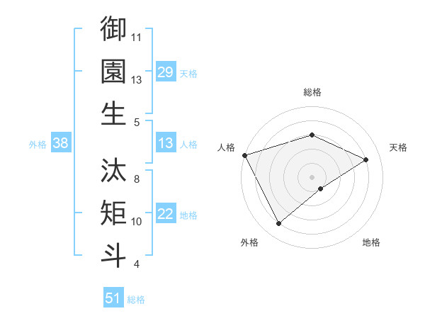 御園生 汰矩斗さんの総格は51画の3点!