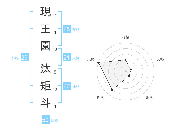 現王園 汰矩斗さんを姓名の画数から五運を鑑定