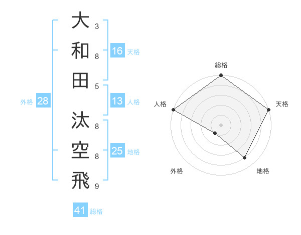 大和田 汰空飛さんを姓名の画数から五運を鑑定