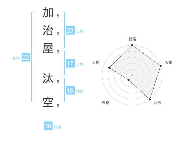 加治屋 汰空さんの天格は23画の5点