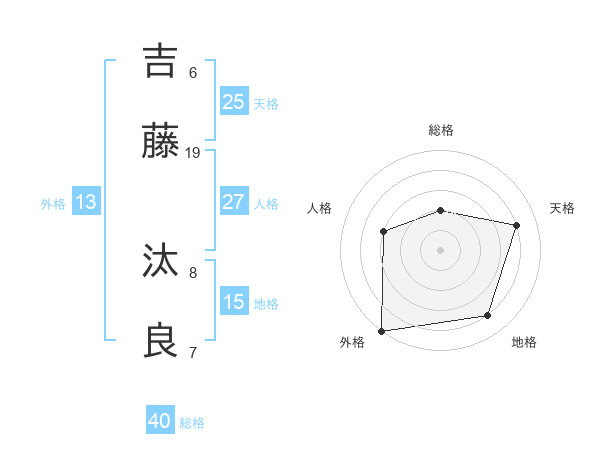 吉藤 汰良さんの外格は13画の5点!