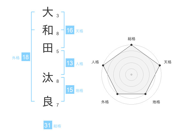 大和田 汰良さんの総格は31画の5点!