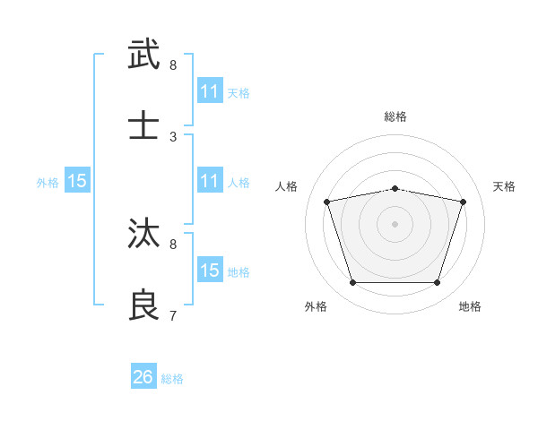 武士 汰良さんの総格は26画の2点!