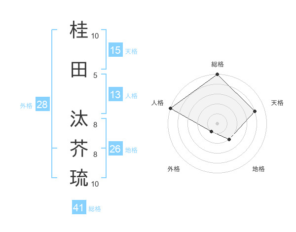 桂田 汰芥琉さんの総格は41画の5点!