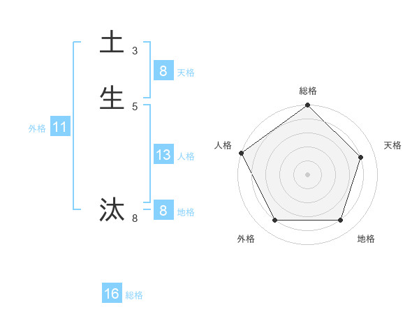土生 汰さんの総格は16画の5点!