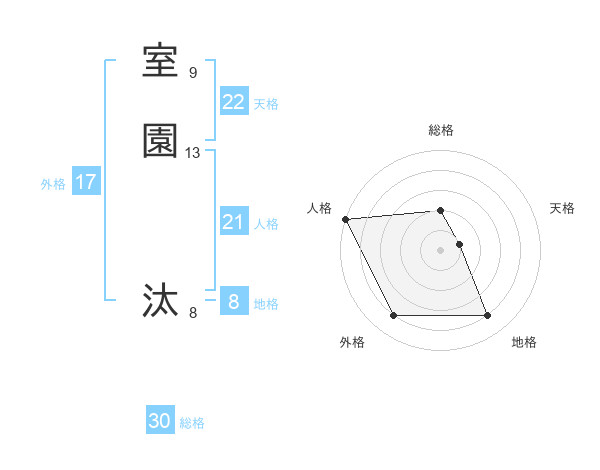 室園 汰さんの総格は30画の2点!