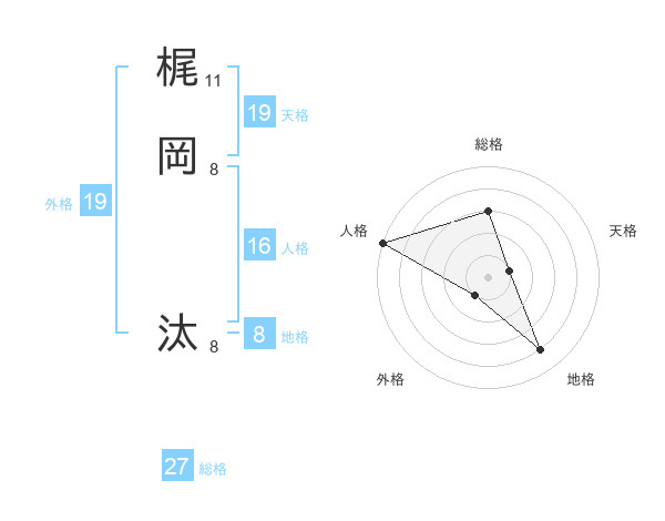 梶岡 汰さんの外格は19画の1点!