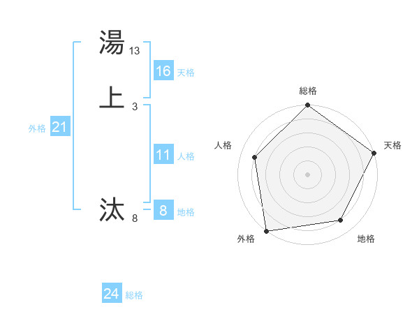 湯上 汰さんの外格は21画の5点!