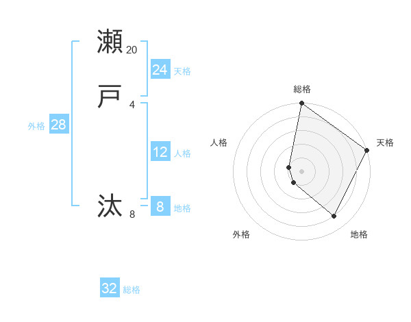 瀬戸 汰さんの総格は32画の5点!