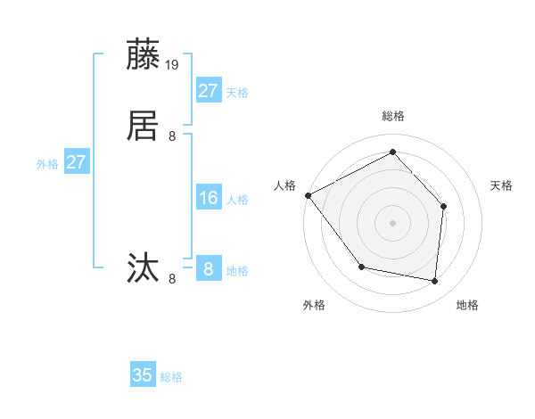 藤居 汰さんの総格は35画の4点!