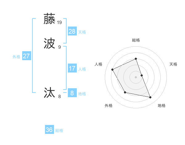 藤波 汰さんの外格は27画の3点!